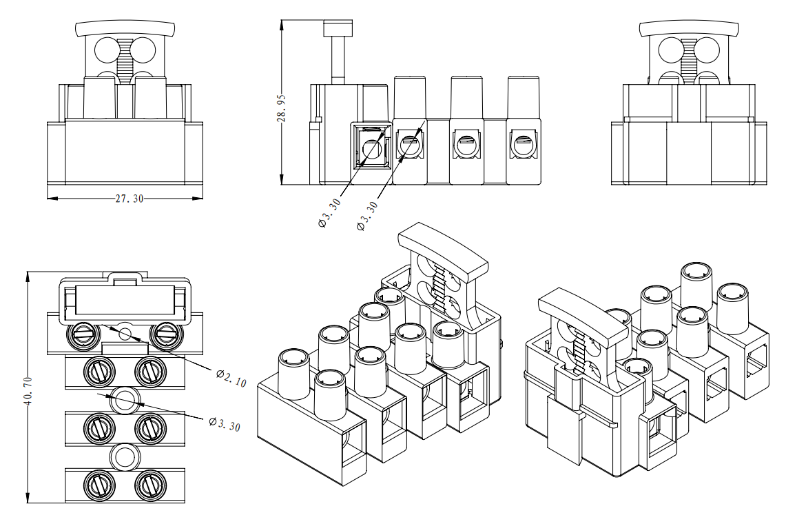 | 連接容量 | 實芯線 | 2.5-4.0mm2 | 0.5-4.0mm2 |
