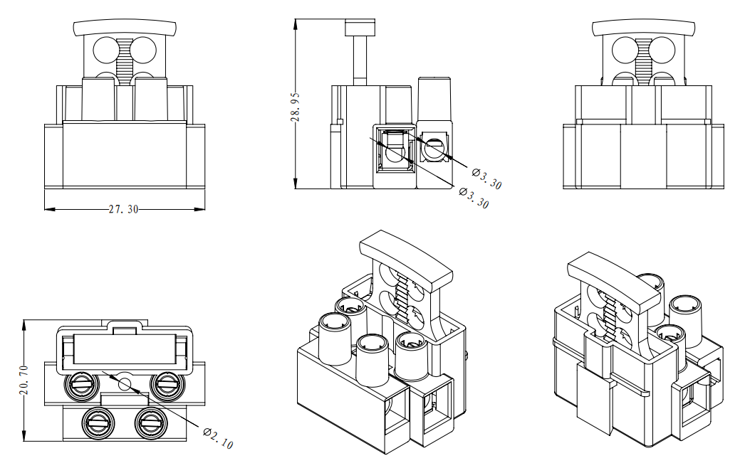 | 連接容量 | 實(shí)芯線 | 2.5-4.0mm2 | 0.5-4.0mm2 |