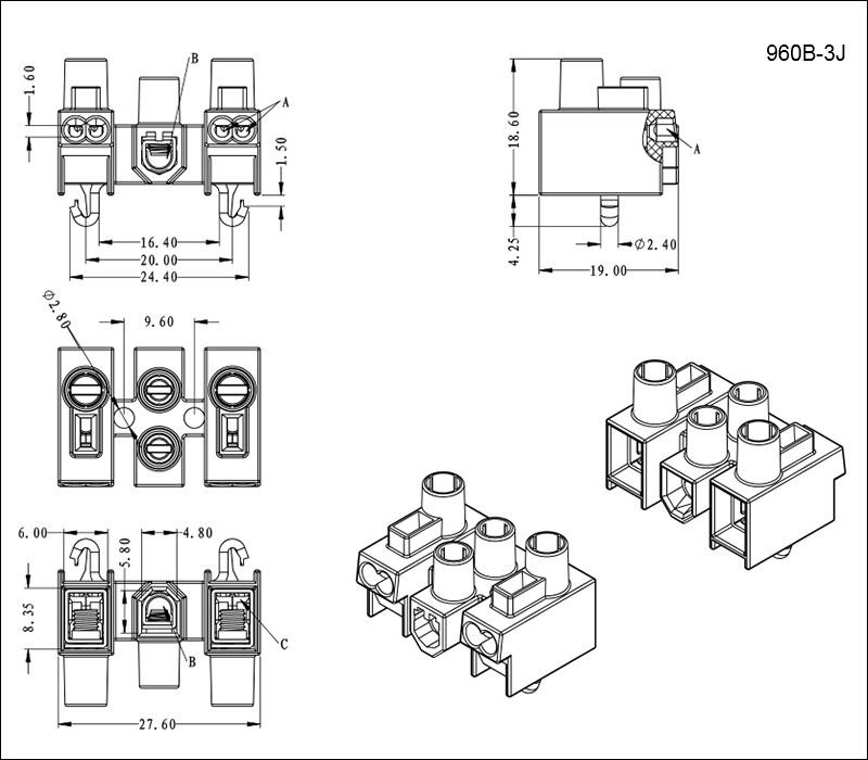 | 960B-3: 2000個(gè) | 960B-3J: 1500個(gè) |