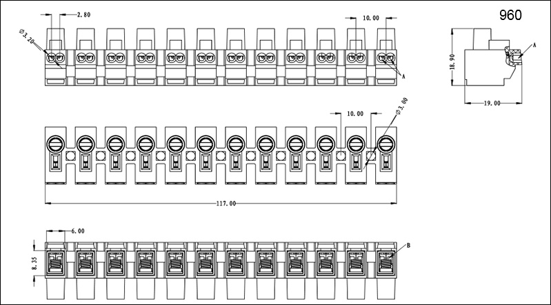 | 螺紋端(B孔) | 實(shí)心線 | 0.75-2.5mm2 | AWG 16-20 |