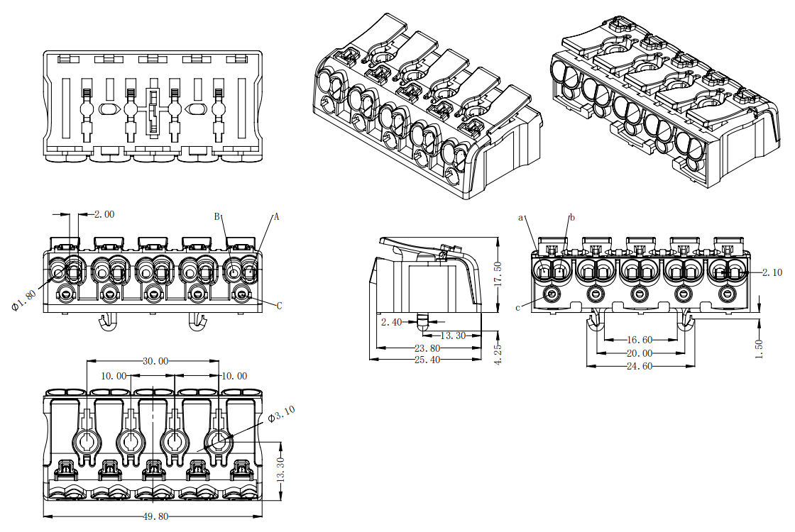 | B孔 | 實(shí)芯線(xiàn) | 0.5-1.5mm2 | AWG 16-20 |