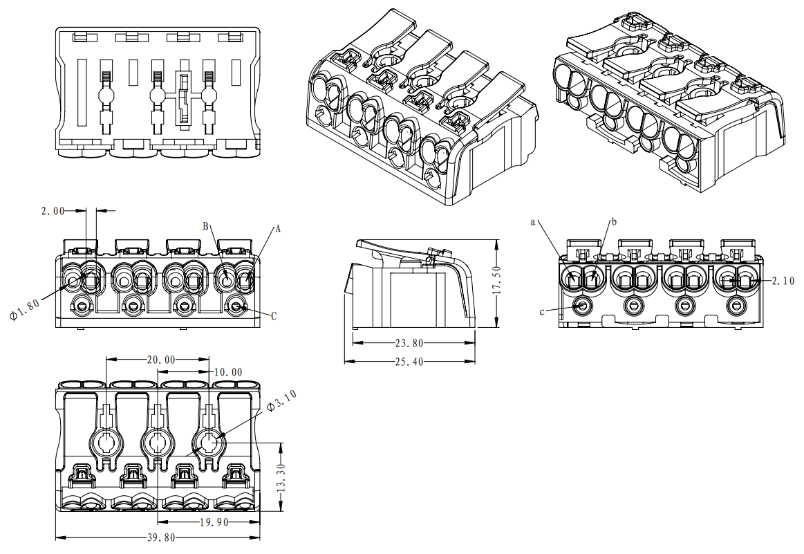 | B孔 | 實芯線 | 0.5-1.5mm2 | AWG 16-20 |