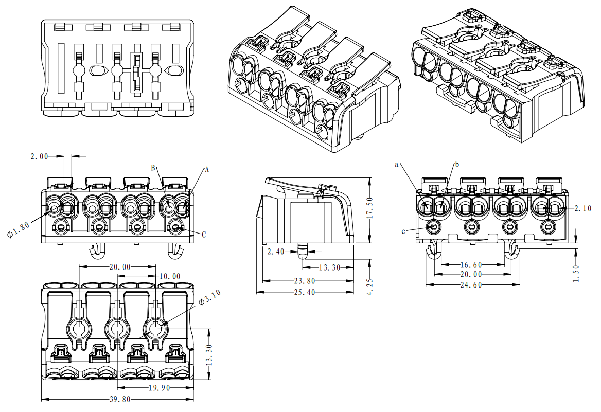 | 工廠側 | A孔 | 實芯線 | 0.5-2.5mm2 | AWG 14-20 |