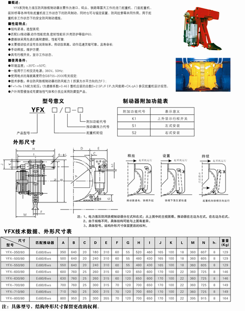 YFX電力液壓防風(fēng)鐵楔制動(dòng)器
